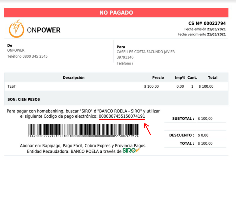 2. Una vez abierto el PDF, en el apartado de "Para pagar con homebanking..." copiaremos el codigo de 19 digitos.